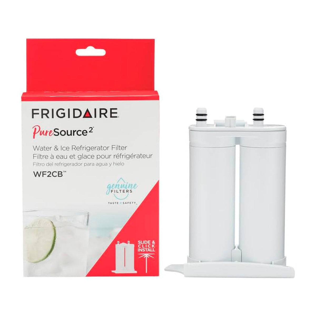 The Frigidaire WF2CB PureSource2 Replacement Filter helps maintain clean, great-tasting water and ice from your refrigerator. Specifically designed for Frigidaire side-by-side models manufactured after 2004, it effectively reduces chlorine flavor and odor, lead, mercury, and other common contaminants. Easy to replace and provides dependable filtration for up to 6 months or 200 gallons.
